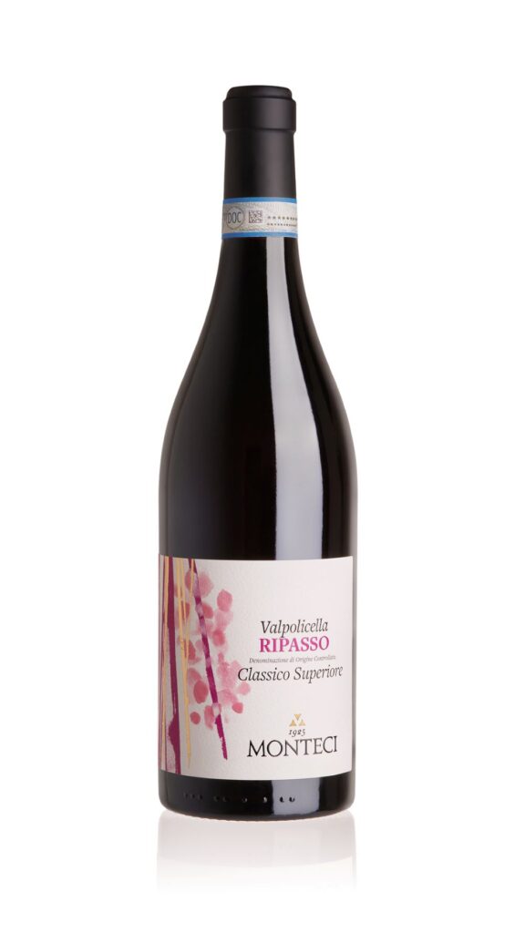 Il Ripasso, da cui questo vino prende il nome, è una tecnica antica, nata dalla saggezza contadina e dall’ingegno dell’uomo, per valorizzare ogni parte della vendemmia. Monteci l’ha reinterpretata con rigore e originalità: il Valpolicella viene fatto rifermentare a contatto con le vinacce di uve appassite già utilizzate per la produzione dell’Amarone e del Recioto. Questo passaggio dona al vino maggiore struttura, complessità e intensità aromatica, rendendolo un’espressione autentica e potente del territorio.